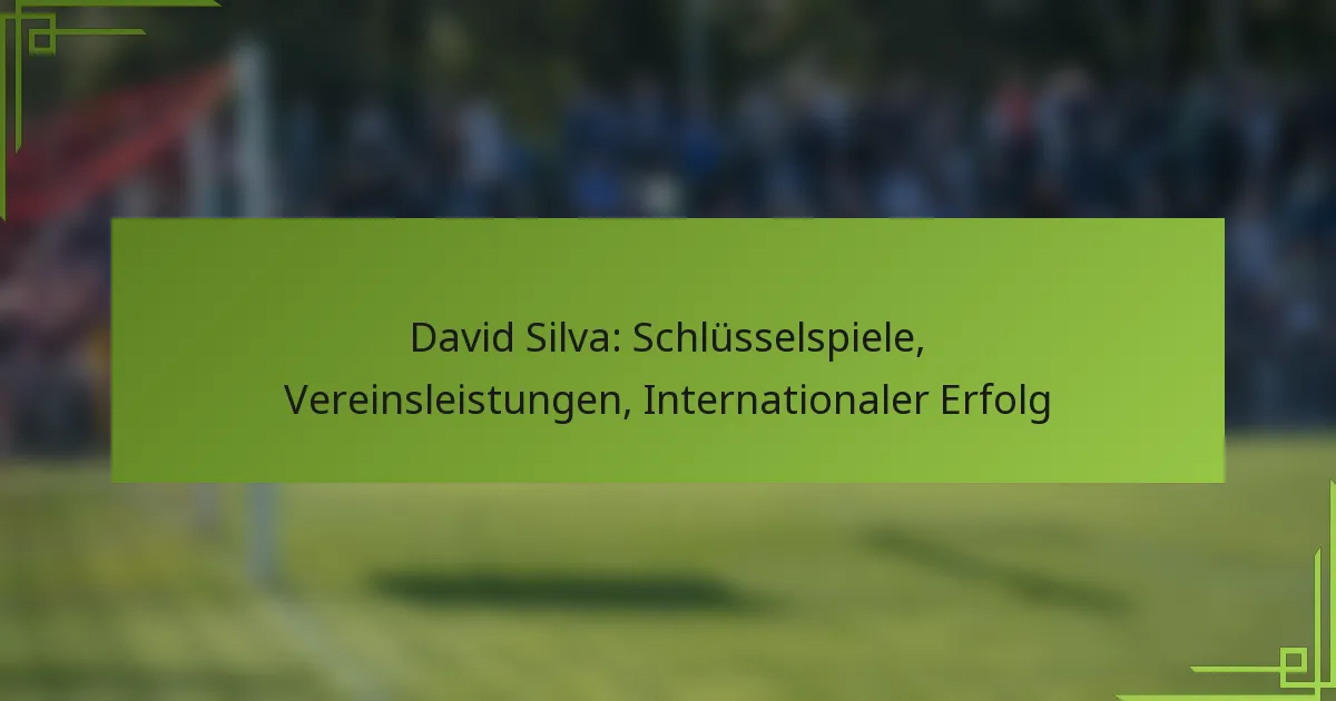 David Silva: Schlüsselspiele, Vereinsleistungen, Internationaler Erfolg